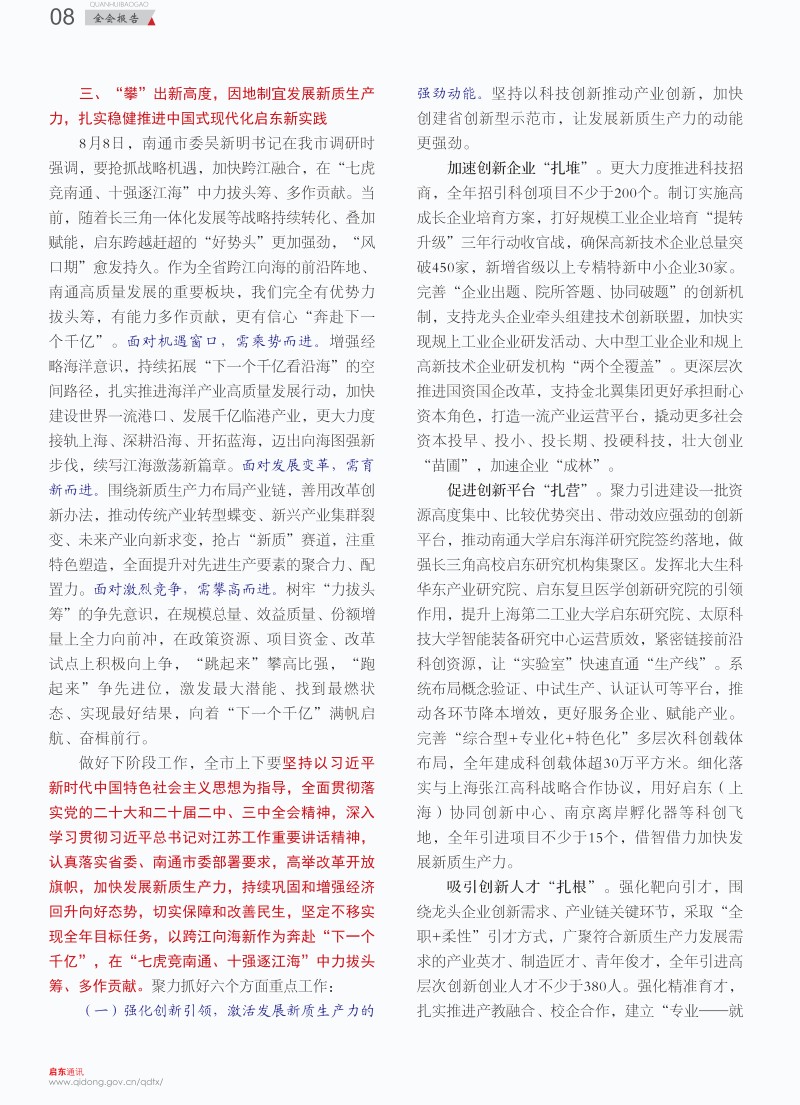 啟東通訊2024年第8期