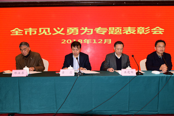 12月7日上午,2018年全市見義勇為專題表彰會在啟東賓館華夏廳召開,南通市公安局副局長、啟東市副市長、公安局長黃忠,啟東市見義勇為基金會理事長洪建陶等領(lǐng)導(dǎo)出席會議。會議首先由南通市公安局副局長、啟東市副市長、公安局長黃忠宣讀了啟東市人民政府《關(guān)于對關(guān)于授予李光耀、范榮榮等6位同志“啟東市見義勇為先進分子”榮譽稱號的決定》,洪建陶理事長宣讀了市公安局和市見義勇為基金會聯(lián)合作出的《關(guān)于對陸施輝等7名同志給予獎勵的決定》,隨后,與會領(lǐng)導(dǎo)對分別對兩類表彰獎勵對象進行了頒獎,并頒發(fā)了獎金。最后,黃忠同志作了講話,對當(dāng)前新的形勢進行了簡要分析,對進一步做好全市見義勇為工作提出了具體的指導(dǎo)意見。會議由基金會副理事長茅曉東主持,全市各見義勇為基層工作站負責(zé)人、兼職工作人員以及志愿者等共90余人參加了會議。
